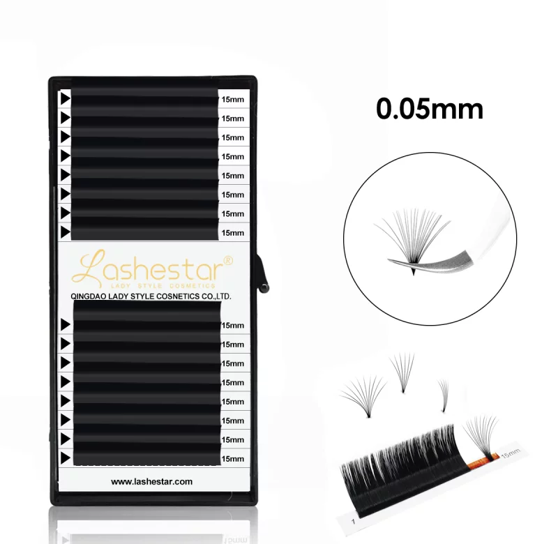 0.05mm easy fan lashes is a relatively common size, most buyers will choose 0.05mm easy fan lashes, because of convenience, and 0.5mm eyelashes look very natural, suitable for any occasion, regardless of age can be used. If you want to get free samples, please contact us, we will provide you with free samples for you to test, and start your business quickly at the lowest cost.