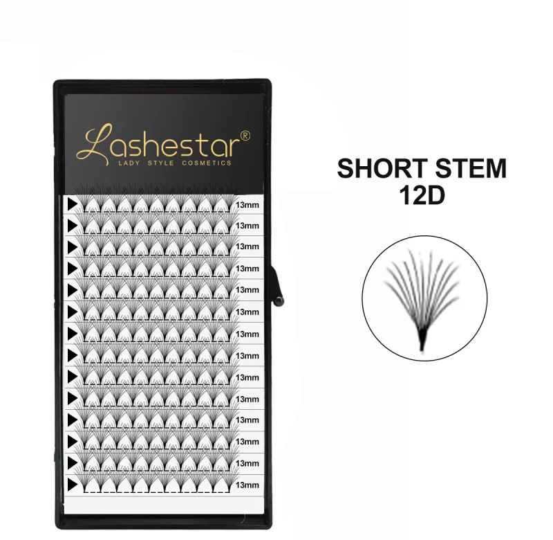 12D premade fans lashes are the most pre-made eyelashes we can do, and the upper eyelashes are very easy to scatter and fall off. 12D already has all the eyelashes that are a bit thick, ornamental, and exaggerated. Generally, the glue of 12D premade fans lashes will be in the middle of the lash to prevent the eyelashes from being scattered and falling off, which is more stable. We provide quick response service, if you are interested in our products, please contact us, we will contact us within 6 hours, and will issue a sample order on the same day, if you need customized products, we will give the design on the same day plan, and make your product and send it out in 3-7 days