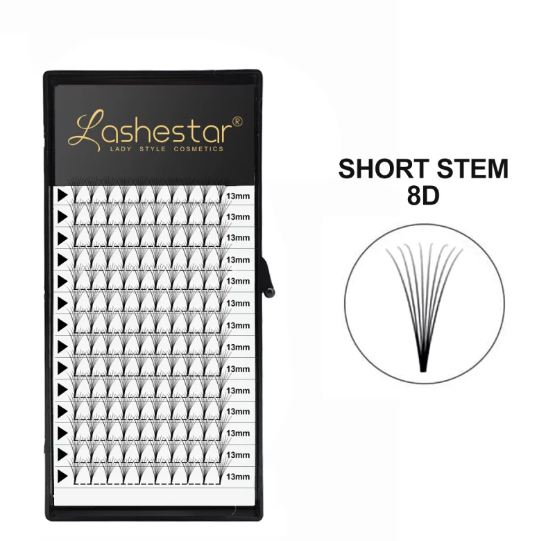 8D premade fans lashes are dense eyelashes, 8 sticks together have exaggerated effect, better viewing experience, suitable for all kinds of parties, weddings and other occasions, it will definitely make you sparkle in front of everyone, whether it is a beginner or a master , you can use premade fans lashes, save a lot of time, improve work efficiency, and allow you to better serve customers. In order to ensure that your store has as few customer complaints as possible, our lashes materials use high-quality Korean PBT fiber , and 100% handmade, only to provide you with better products.