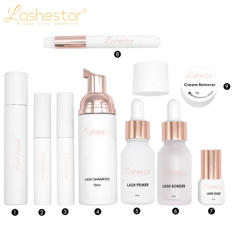 Lashestar offers a comprehensive wholesale solution for purchasing lashes and lash tools. Our liquid kits provide a convenient way to start your lash business quickly and easily. These kits include all the necessary tools, such as lash shampoo, lash glue, lash bonder, lash primer, shampoo brush, brush tube, glue remover, lash growth serum, and lash coating. With our liquid kits, you can streamline your purchasing process and have everything you need to provide high-quality lash services to your clients.